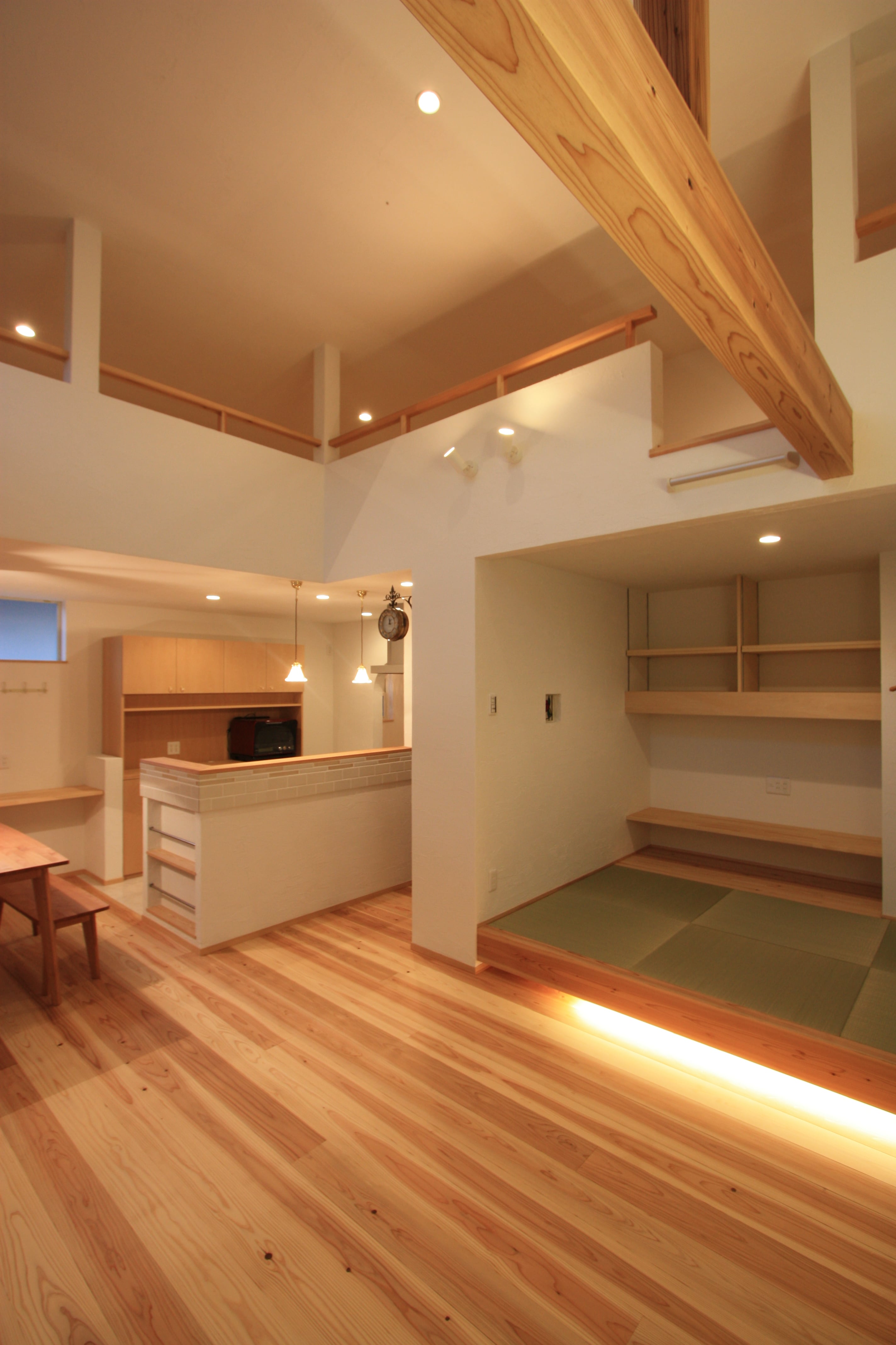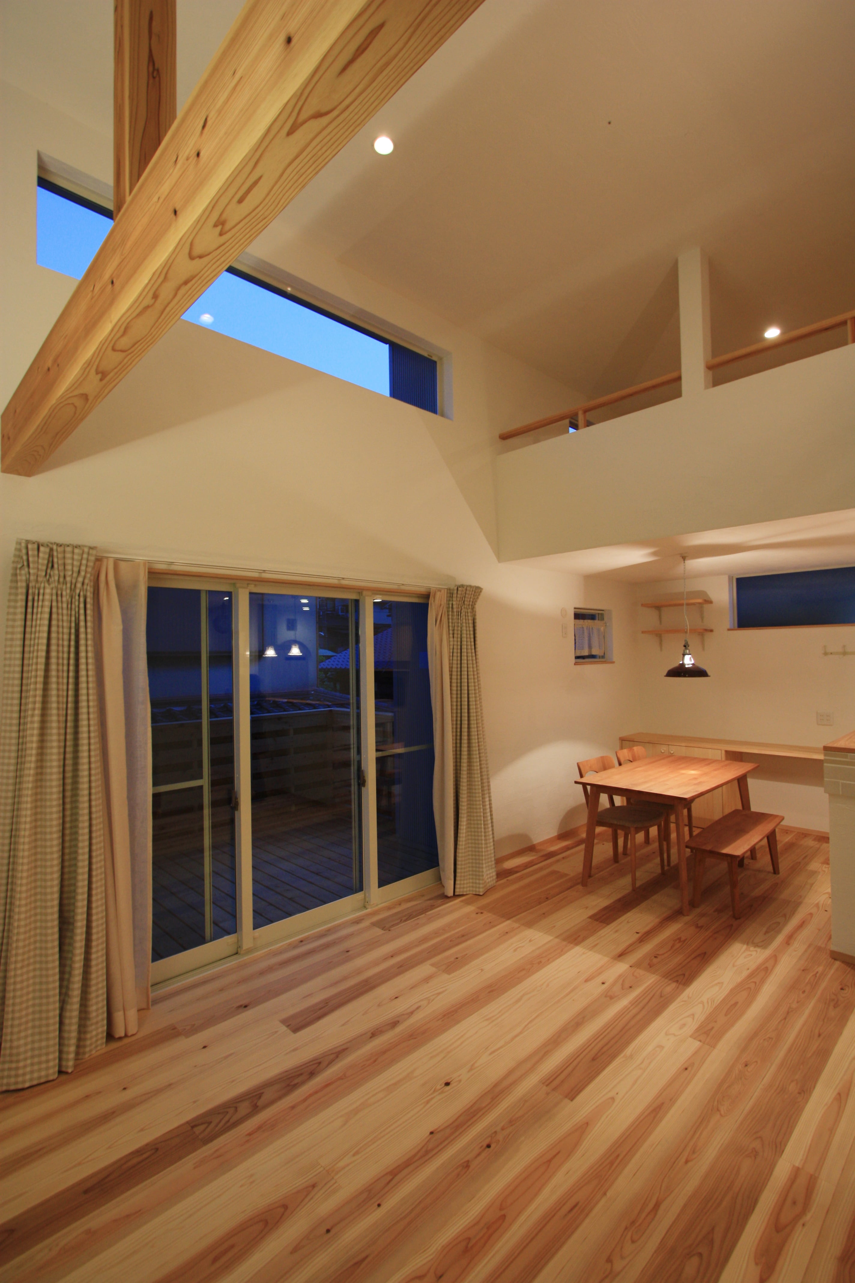 杉の貼り、杉の床、杉の手すり。