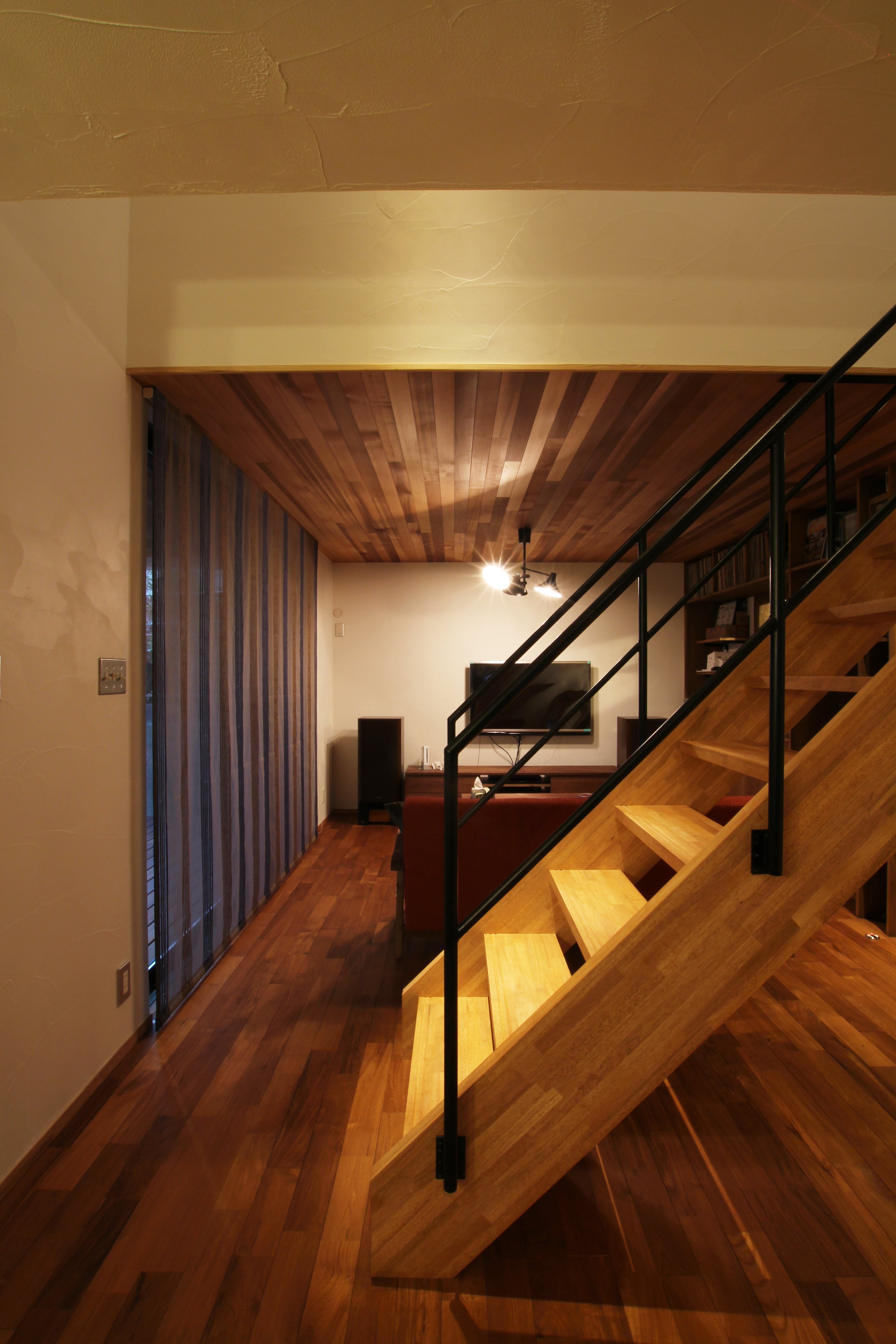 階段でリビングとダイニングを仕切ると空間に変化が生まれます