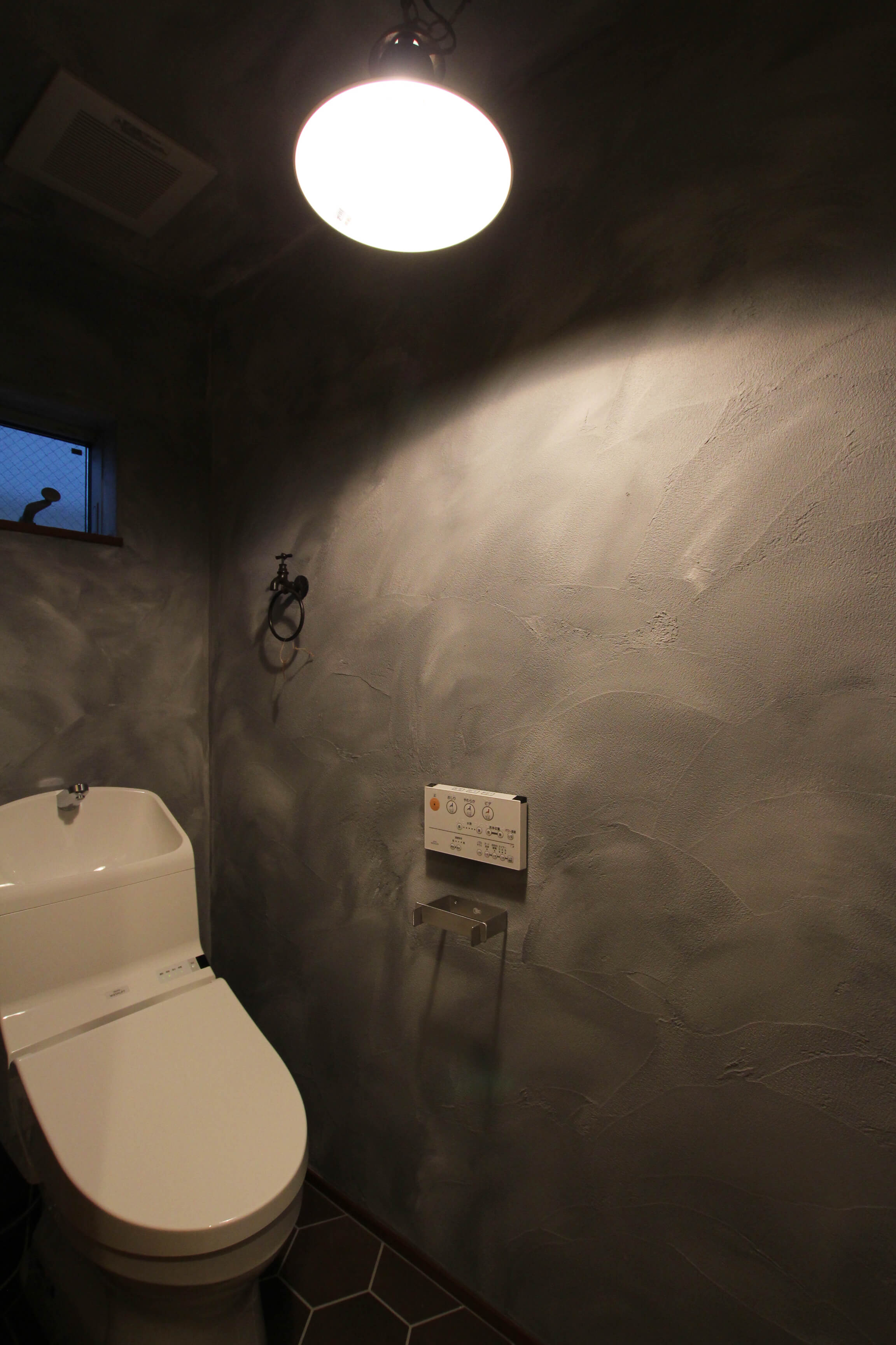 左官仕事が引き立つトイレ。墨モルタルの配合に工夫し色ムラを演出