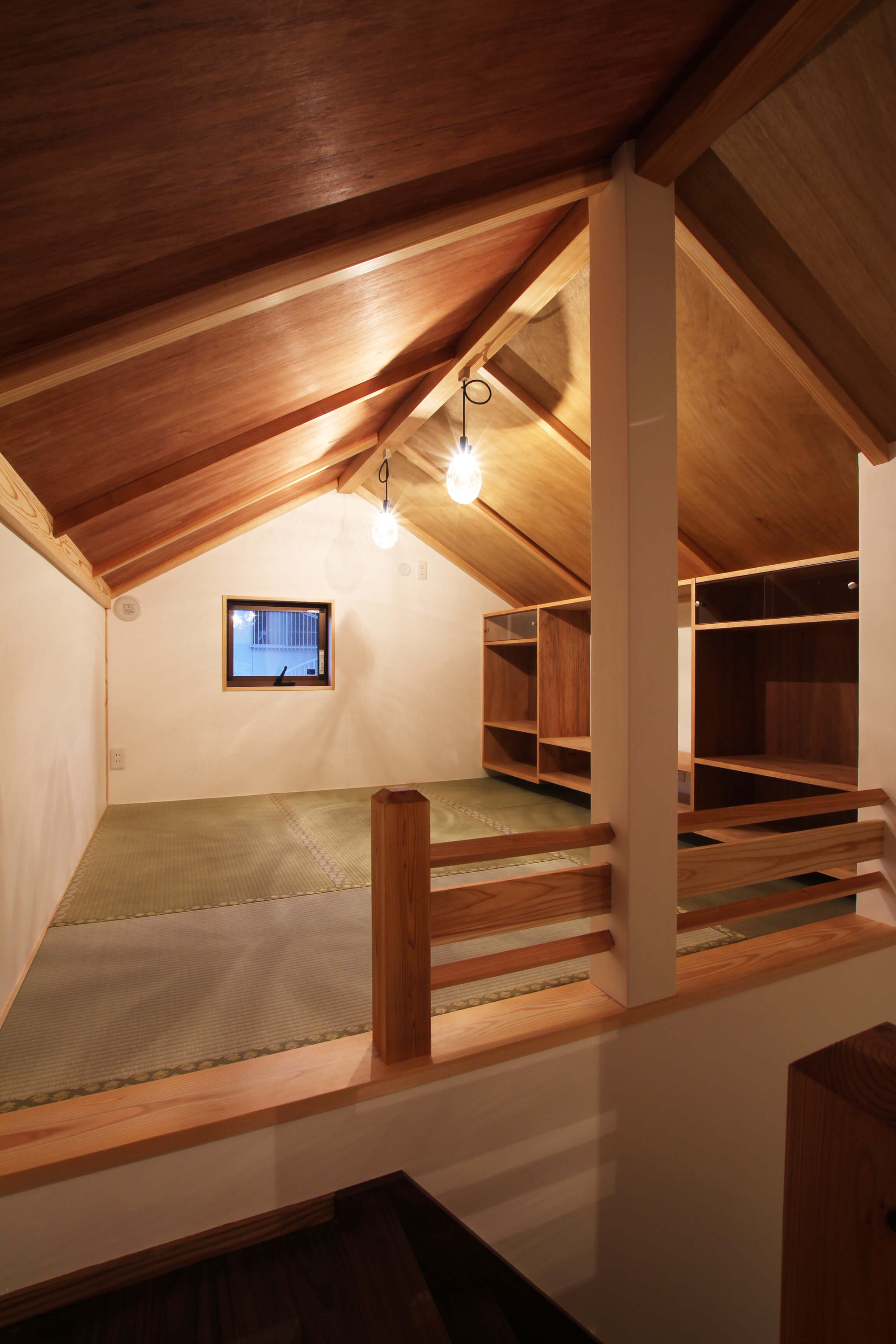 昭和初期に走っていそうな寝台列車を想像してつくった寝室。