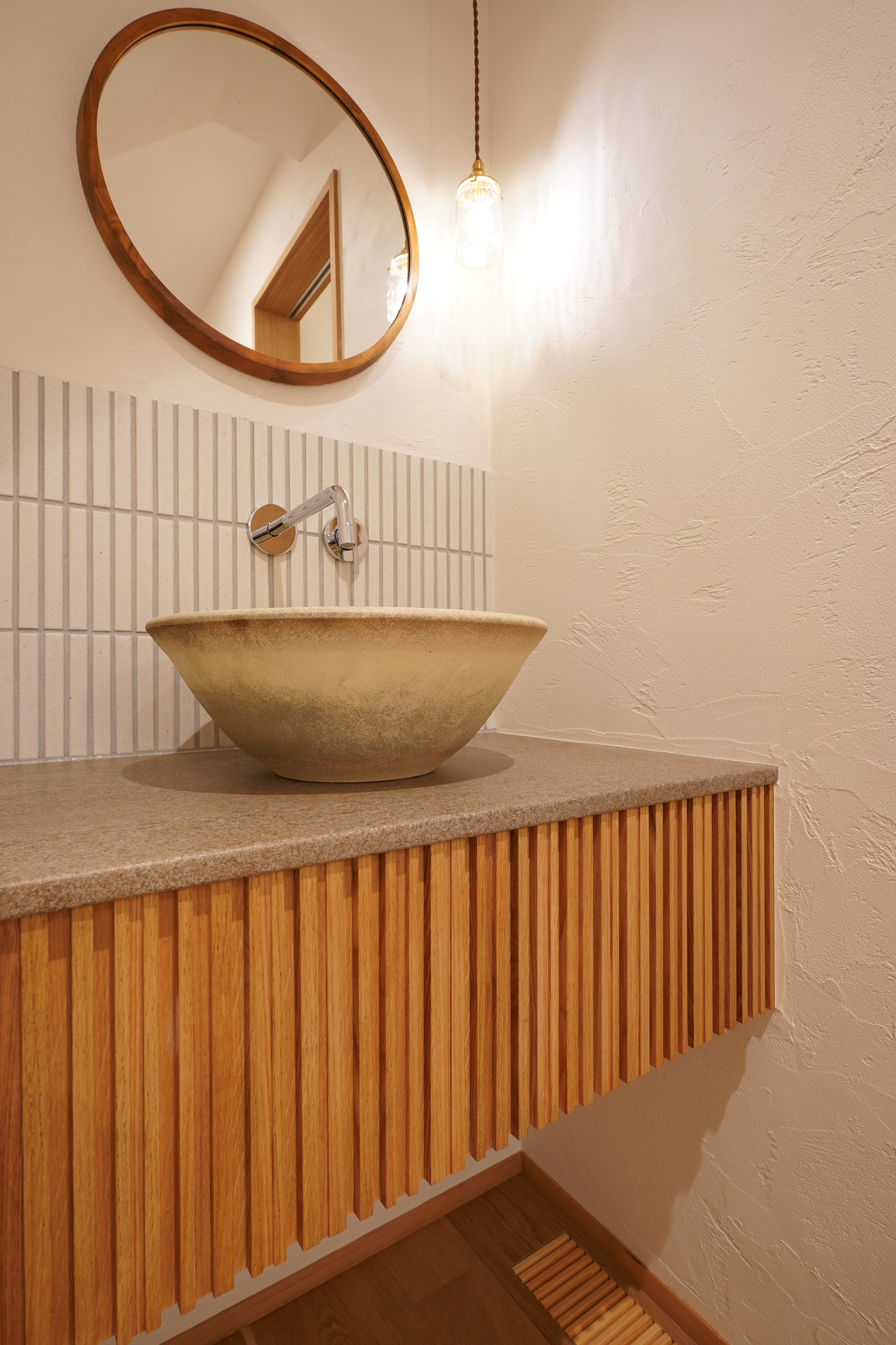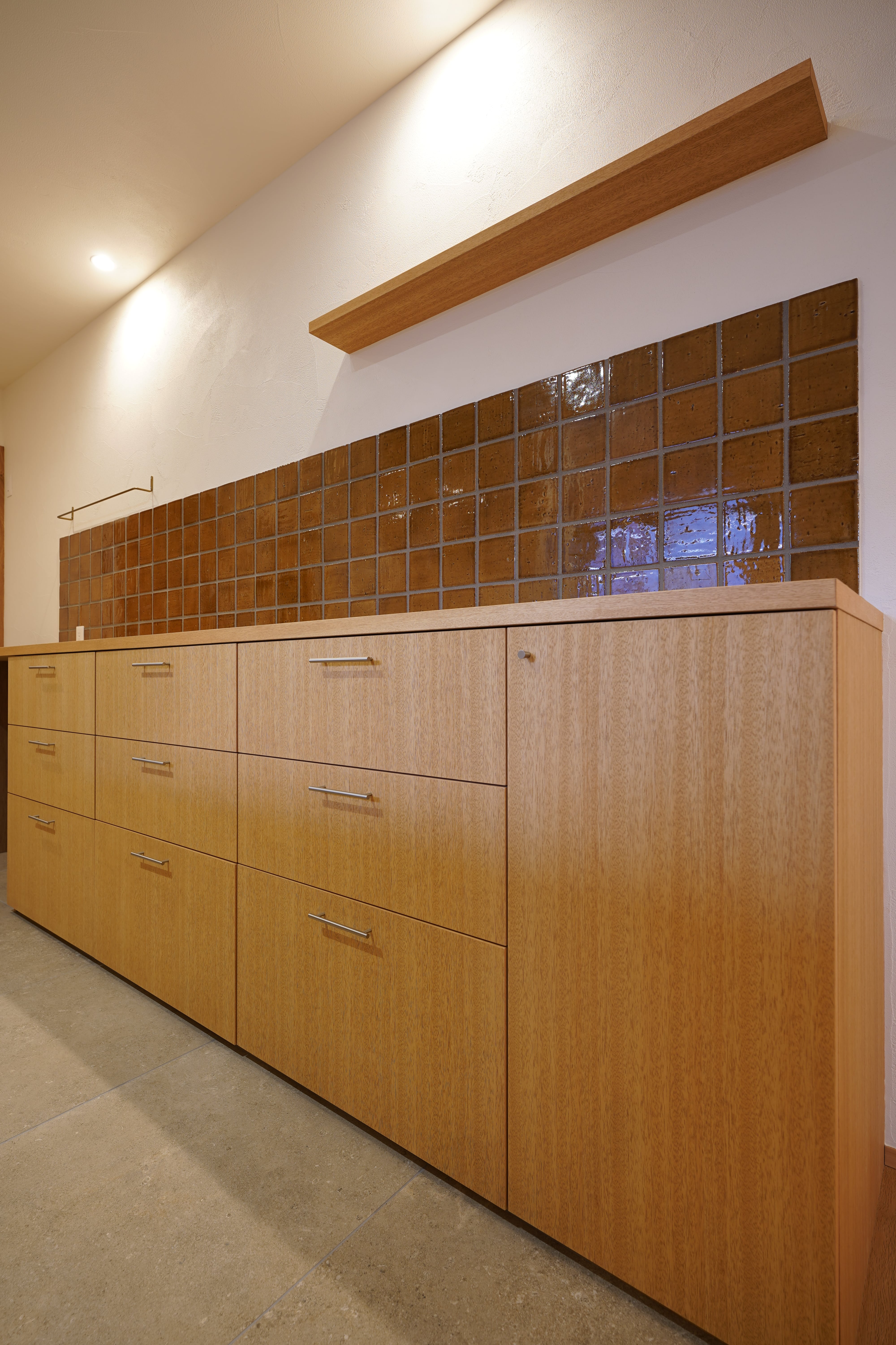 好きなものを好きなだけ散りばめて、“らしさ“をのびやかに形作った空間。南の大きな窓から入り込む優しい暖かな光、キッチンから臨む、囲われた小さな庭が、視線や喧噪を遮り、外と内を柔らかくつなぐ。 和も洋もどっちも好きだからこそ、どっちも入れてあえて統一させない、飽きない自分たちの好きな空間。ぬくもりと質感を調和させて構成したこの空間に、音楽と動物たちの声が溶け合って、日々に豊かさを与えていく、そんなお家です。