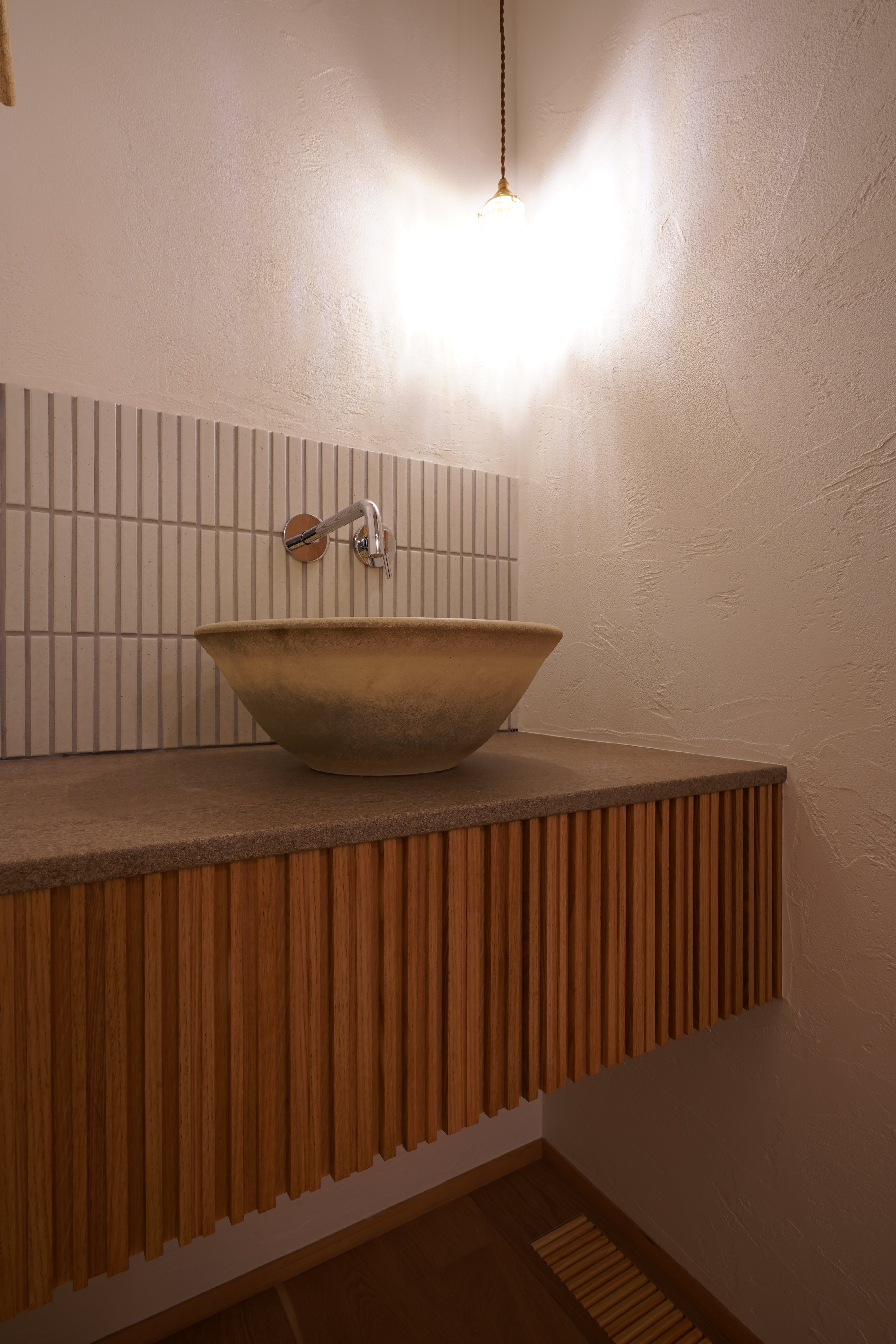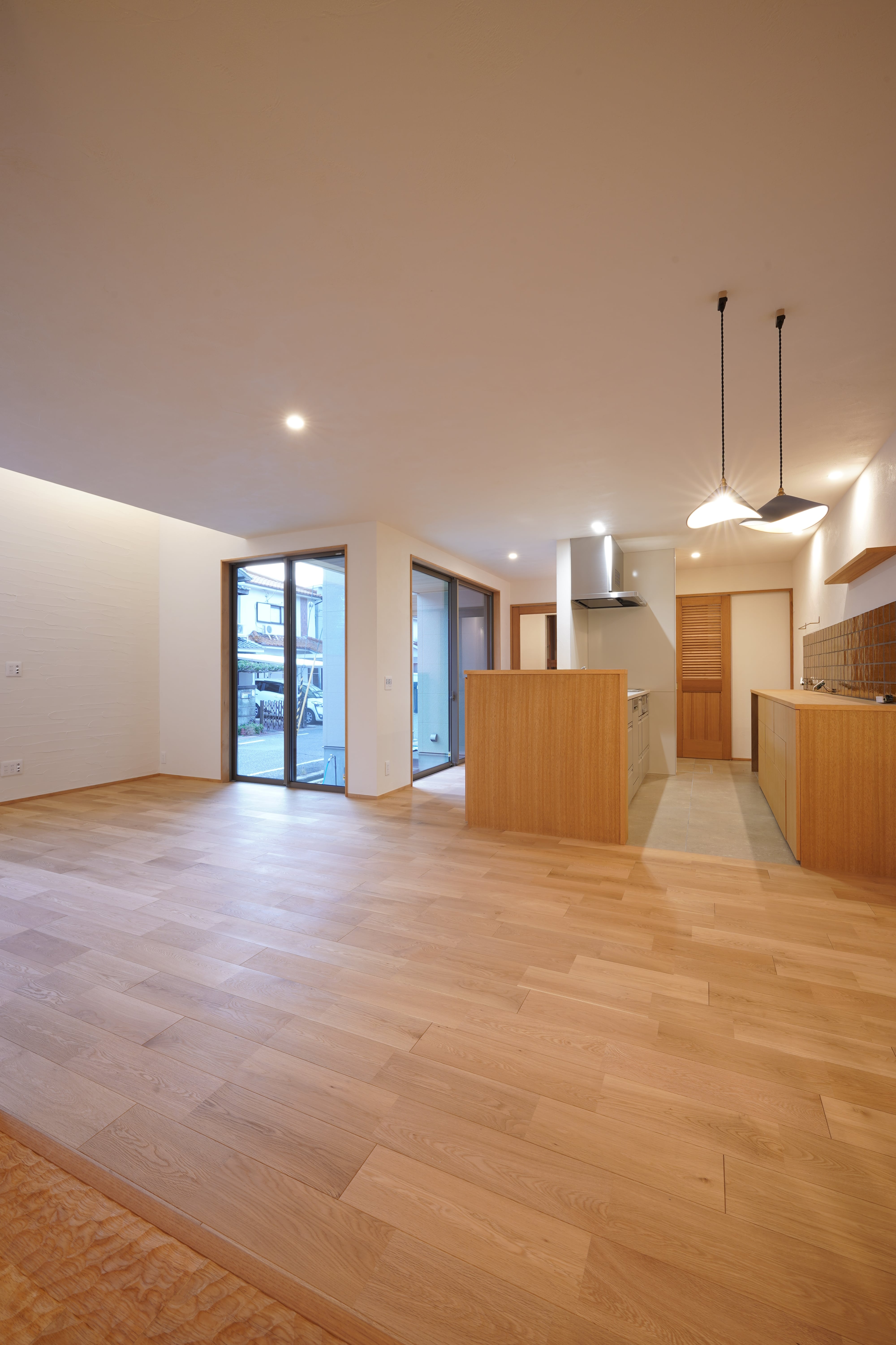 好きなものを好きなだけ散りばめて、“らしさ“をのびやかに形作った空間。南の大きな窓から入り込む優しい暖かな光、キッチンから臨む、囲われた小さな庭が、視線や喧噪を遮り、外と内を柔らかくつなぐ。 和も洋もどっちも好きだからこそ、どっちも入れてあえて統一させない、飽きない自分たちの好きな空間。ぬくもりと質感を調和させて構成したこの空間に、音楽と動物たちの声が溶け合って、日々に豊かさを与えていく、そんなお家です。