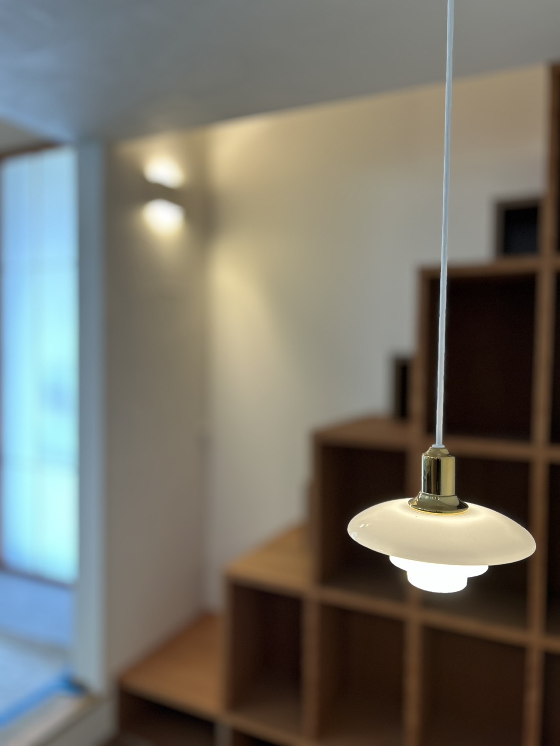 切妻屋根の平屋に、ロフトとつながる勾配天井のリビング。その広がりの中で、やわらかな陰影が静かに重なります。クルミの床、ブラックチェリーの造作、漆喰やタイル、大谷石。異なる素材を使いながらも、トーンを揃えることで空間は穏やかに整えられています。ルイスポールセンの照明シェードや、障子越しににじむ気配。輪郭をやわらかく整えながら、好きなものが自然に馴染む住まいです。